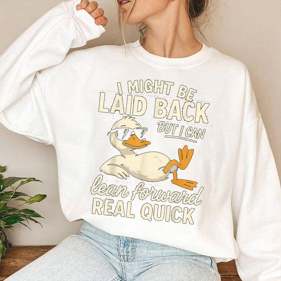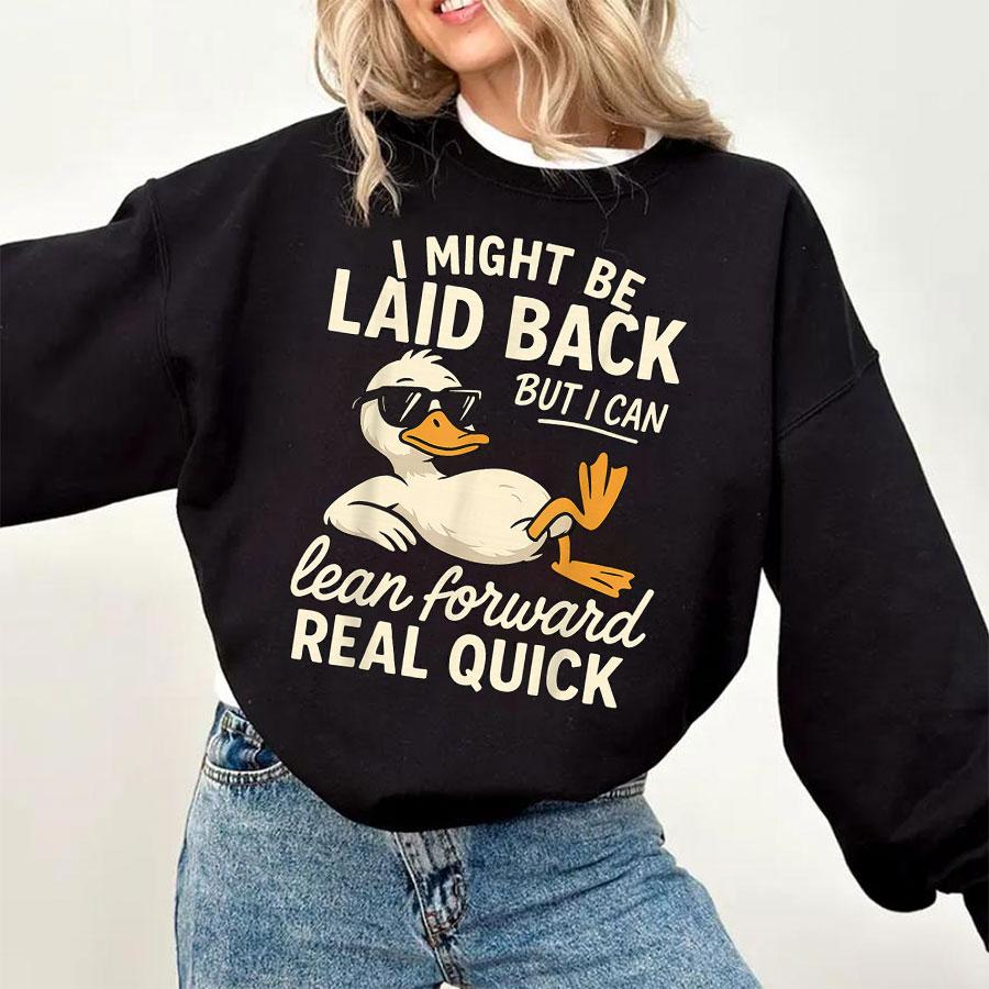 I Might Be Laid Back But I Can Lean Forward Real Quick Sweatshirt Funny Sarcastic Quote Crewneck for Women Men